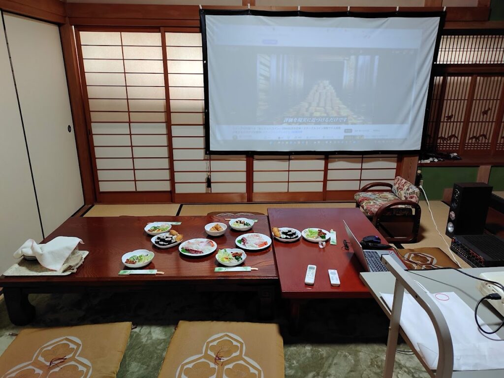 私は、プロジェクターや音響の調整をして、料理や飲み物の準備をして、待っており